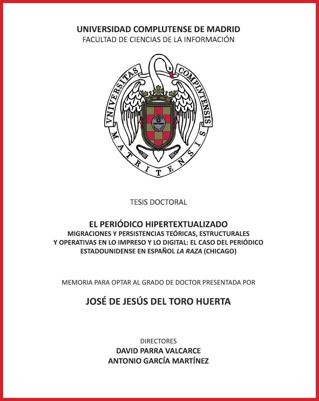 The PhD dissertation ‘The hypertextualized newspaper. Theoretical, structural, and operational migrations and persistences in print and digital media’ by Jesús Del Toro (Doctorate in Journalism, Complutense University of Madrid) tackles the phenomenon of hypertext, hypertextualization and the impacts and transformations that its concepts and main theories (some of them could be considered classics) have had in news media, journalism, and newsrooms, and in general in the perception and collective imagination of notions of newspaper and news media in the context of audiences profoundly influenced by Internet and its digital content and services.